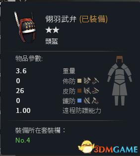 No.3 翎羽武弁,二星装备,重量轻,防御力不差,获取方法:每月首充礼包