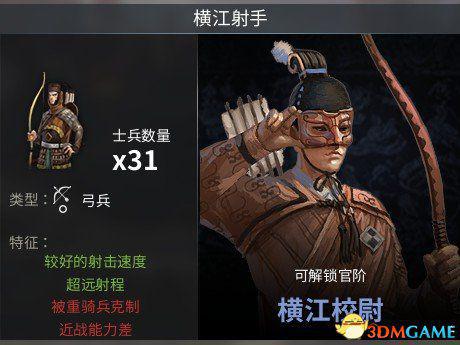 克制兵种:弓兵,弩兵。