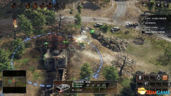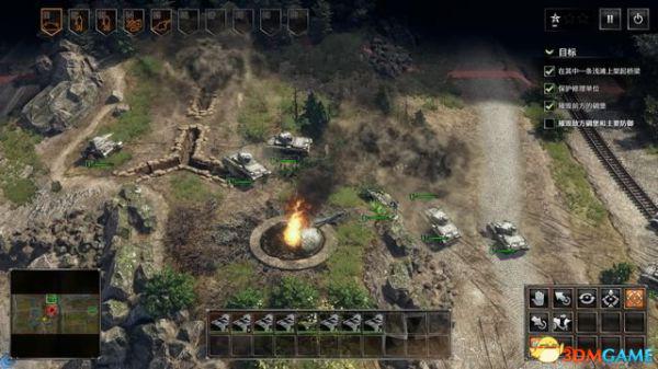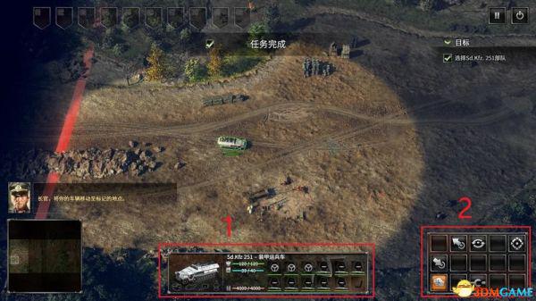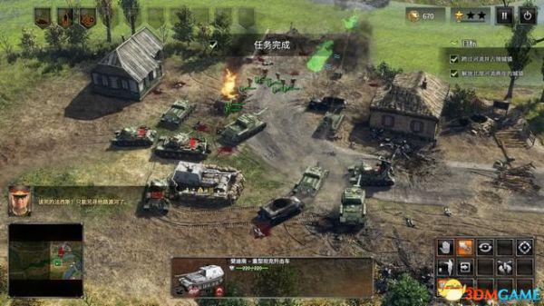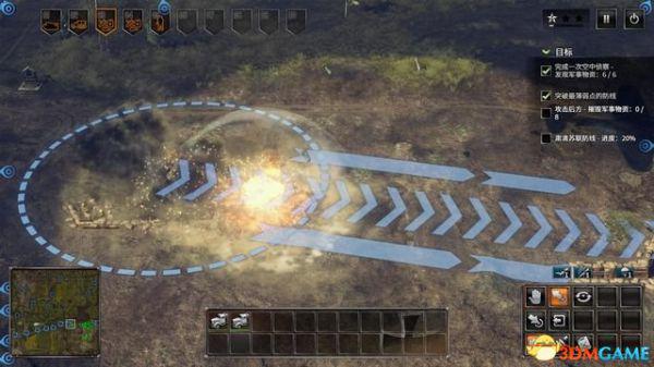 从侧面各个击破敌军阵地后完成本关。