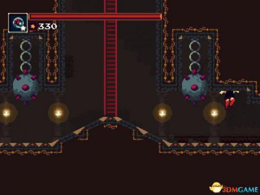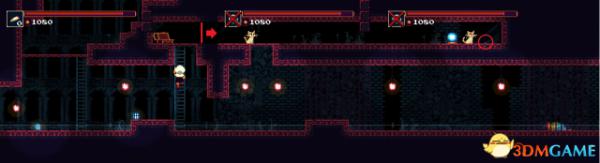 (2) 铁球陷阱场景,楼梯右方的铁球旁边墙壁有隐藏缺口,往上跳进缺口即可取得。