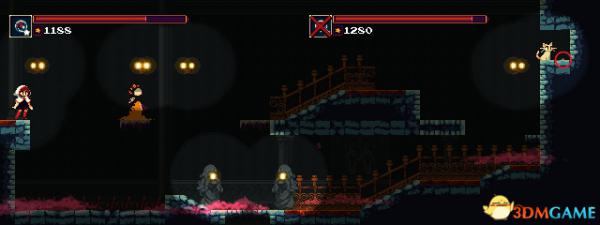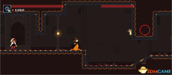 (2) 小BOSS巨剑骑士出现的场景,从右上方平台处往左上方跳,在半空中有隐藏平台可站立,接着就能跳到右边的象牙虫处。