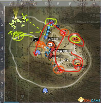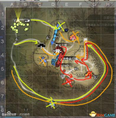 喜欢走后门的朋友可以在一阶段和大家说一声,先去把5号营地占了。为什么呢?一是后期对面很精,看你占5号营地就会回头,后期偷后门达不成突然性;二是对面看你占了5号营地很可能会留一队兵不动,力量就削弱了。至于后门路障,看着办,可以费一队兵先砸开,也可以占了5号营地就回头帮队友推车。