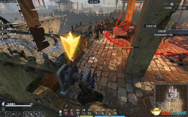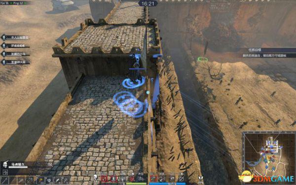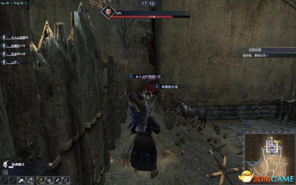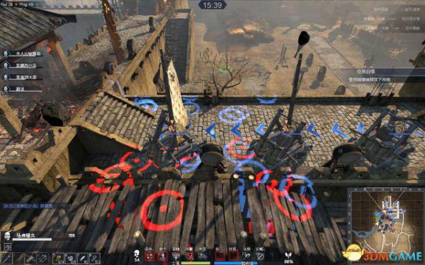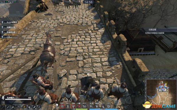 处理完小弟,将小强引至小巷里,大家最好全出来。留一人即可。这个时候卡在小巷里的小强的风车和挥砍是很难打到人的,但蓄力突刺一样能杀你。(如果你没连弩,可以充当这个牺牲者),有远程的就可以趁机输出。