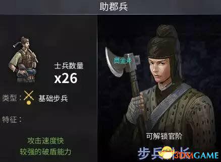 在《虎豹骑》游戏中, 助郡兵是蜀国的2级兵种,那么如何恰当地使用这个兵种使它发挥最大的价值呢?今天为各位带来了虎豹骑蜀国2级兵种助郡兵详解,需要的玩家快来看看吧。