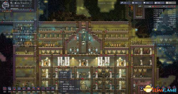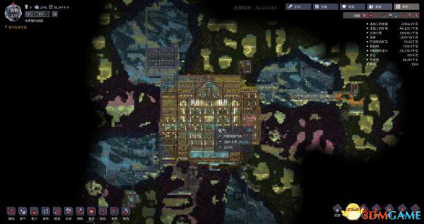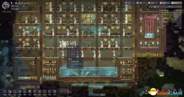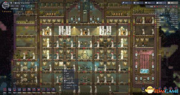 农场瓷砖为初期种植虫树使用(后期当然吃小麦) 右侧仓储区最下方为食物储藏区(这个是当时设计纰漏,临时改的)最右侧为温泉水冷却区。