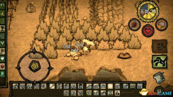 前期打法首先把你的浆果放在地上,拿着武器(普通长矛就好),然后背对它,走开几步,接下来火鸡过一会儿会转过头两眼红光色眯眯的看着你的浆果,这个时候就可以回头了,走到浆果旁,不要太近保持一步的距离,然后等火鸡捡浆果吃的时候冲上去一打就死。