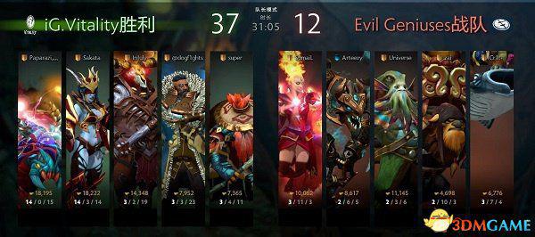 iG.V的对手是Liquid,在前期,撼地者的游走打出了不错的效果,但是流浪剑客配合黑暗贤者的团战体系顽强的将局势打了回来。关键团战中,Liquid的不朽盾改变了局势,iG.V遗憾落败。第二局中,iG.V的死亡先知中路无人可挡,但是Miracle拿到了招牌英雄祈求者,在中期一波长达数分钟的团战中,上演了令人窒息的卡尔秀,最终拿下了比赛。