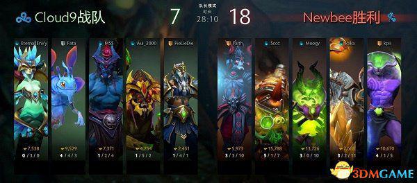 本轮比赛的焦点之战,必然是Newbee迎战EE sama了。而在这两局中,Newbee都选择了强有力的推进阵容,一局帕格纳和一局卓尔游侠让Cloud9防守不暇,比赛结束得干脆利索。