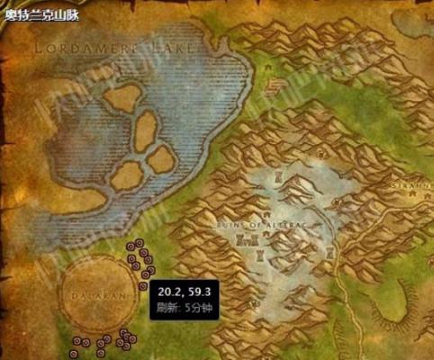 达拉然召唤师位于希尔斯布莱德(24.5,15.1)和奥特兰克山脉(20.2,59.3)附近。具体位置如下图。