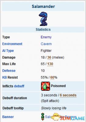 11.-蝙蝠有10%的几率使玩家中上"野性撕咬"的DEBUFF,它使玩家攻击提升20%,但会使生命回复速度减少50%。此DEBUFF也会给玩家随机增加其它的DEBUFF。