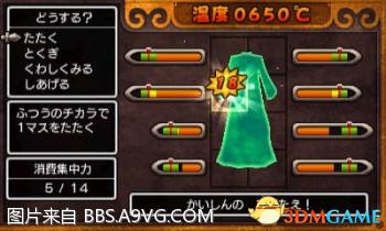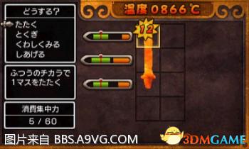 与DQ8、DQ9的炼金系统不同的是,这次的锻冶不仅仅是放进素材就能一键制成的,还有一个锻冶的过程。通过锻冶系统不但能亲手打造出强力的装备,还能够强化以后的装备。