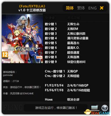 Fate/EXTELLA无限生命怎么修改 13项修改器使用教程