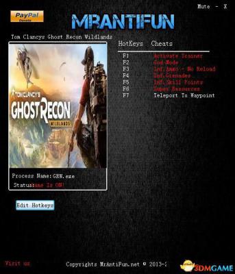幽灵行动:荒野 v2327814七项修改器[MrAntiFun],由MrAntiFun制作分享,本修改器提供无敌、无限弹药、无限手雷、无限技能点等等项目的修改激活。