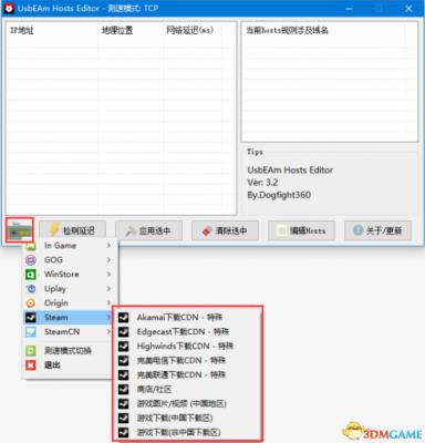 ②、打开UsbEAm Hosts Editor v3.2.exe,并点击下图红框圈中的选项,依次修改每一个steam相关的hosts