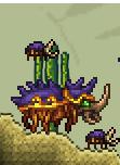 所以这个boss我建议就和蠕虫类boss一个打法,吊根绳子把自己挂上面,然后召唤boss,如果手残担心自己会失误掉下去可以装个云瓶,武器任何可以进行远程攻击的武器理论上都是可以的,但是用伤害较低的武器我个人不推荐,因为boss残血时会激活其连跳技能,绳子不够长的话你仍然有被boss打到的可能性,所以推荐用手榴弹直接把boss炸死。