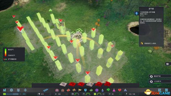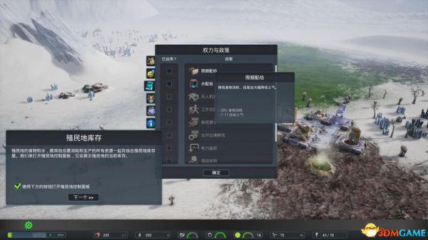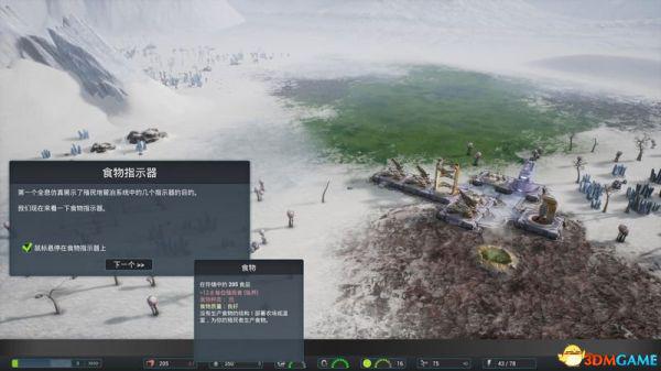 2、游戏的重要数据栏,包含食物、饮水、人口、空气、电力等等核心数据。