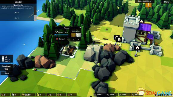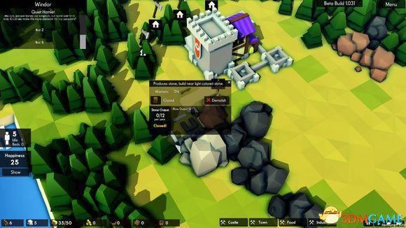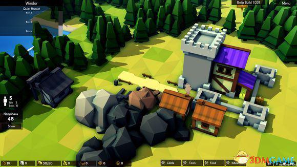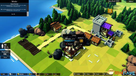 木材够10时关停伐木场,随便找地方塞两个Hovel(小茅房,占一格地块每个能住五人,密度很低,后期能不用尽量别用)吸引第一批居民来达到10人,获取劳动力。