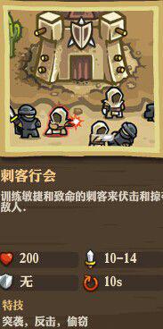 刺客(小偷)行会,能够升级3种技能,偷窃能够增加收入,是非常有用的技能,其他的技能也很有用,比起基础士兵是很强大的兵种,缺点是科技线和比较脆。