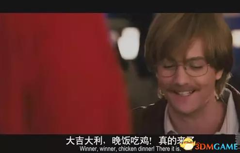 这段话的英文原版是“WINNER WINNER ,CHICKEN DINNER!”,源于电影《决胜21点》中的一段台词。电影中一个赌徒在美国的赌场里每次赌钱之前都要说一次这句话, 然后就总能赢钱。
