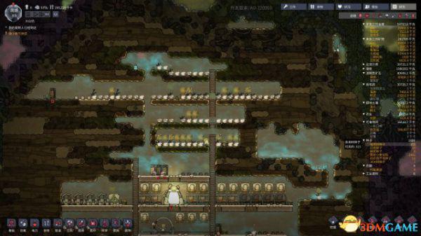 萌新可能不知道怎么丢种子,其实就是放好种植盆,插上树种,再拆掉,就有一个种子丢在那里了。开局挖土的时候注意一下布局,留下几行原始的土地(什么材料无所谓,泥土、砂石、铜矿、煤炭都能长),等开发出了种植盆的科技就可以用这招种起来了。