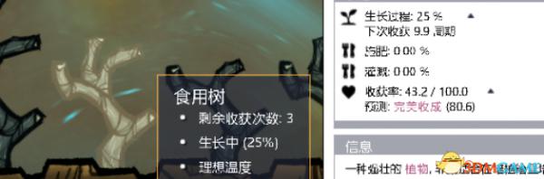 已知食用树的完美收获是1600 卡 和2个种子,又得知食用树初次成长时间为20,随后每隔10天收获一次,一共可以收获3次。所以食用树野外完整生命周期是40天。可以算出平局每天出产120(160040*3)卡的食物。