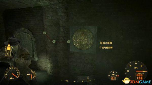 瞄准星在左侧点击,自由之路环逆时针转,右侧则顺时针转。上方红色箭头指向字母的位置,每输入一个字母,便要按一下中心的按钮,依次转动圆环,让指针指向“R、A、I、L、R、O、A、D”,并逐一按下按钮,就可以打开左侧的门。