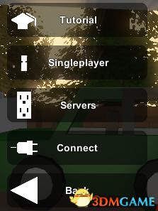 四项选择分别是教程、单人模式、服务器列表、直连IP。