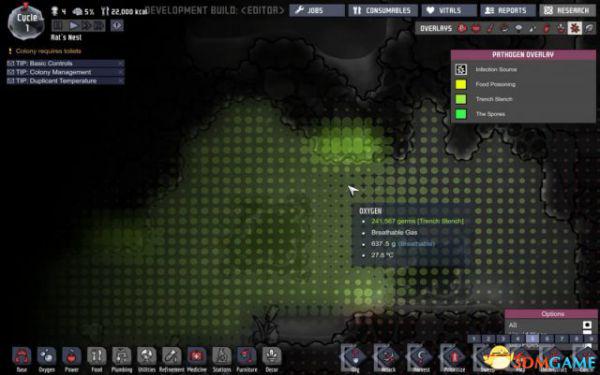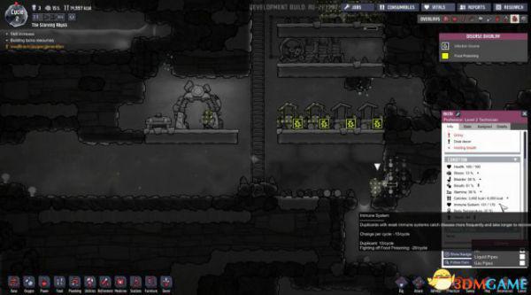 在病菌视图下可以查看病菌产生源,比如图中的厕所就是产生“食物中毒”病菌的源头。