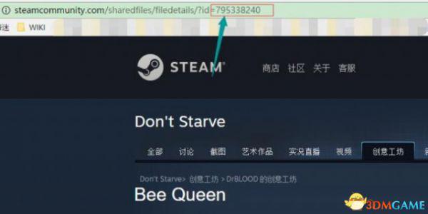 1、先找到自己喜欢的MOD,然后记住浏览器地址栏最后的ID数字,比如下图这个,ID就是795338240;