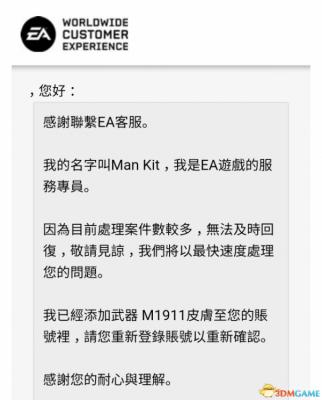 (ps:其实,如果你没有完成社区任务,但又想要这个皮肤,这样发给EA,他们也会给你皮肤的)
