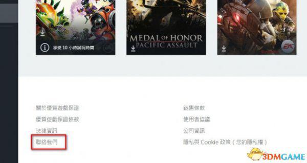 在游戏库下面找到联络我们,点击进去。