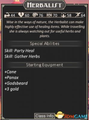 低级模式不推荐使用草药师,跟学者相比相形见绌,唯一得意的团队治疗其实也并没有多大意义,因为草药量是完全足够三人分开使用的,而且在后期的战斗中使用草药的行为本身就意味着你要空过一回合,对魔法输出极高的法师而言,跳过一回合可能代表少杀死一个怪,自然也就会多承受一轮的攻击,从结论上来说是很不合算的举动。在战斗前保证较好的状态比在战斗中回血要可靠的多,而当你不得不频繁在战斗中回血的时候就代表着你的等级和装备已经与现在的节奏脱节,即使靠草药狗言残喘,也很难继续走下去了。