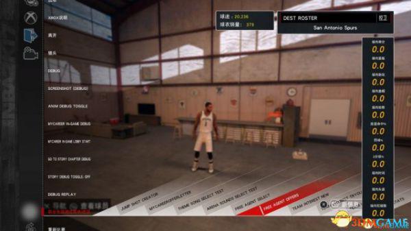 2、打开菜单,翻到最下边,选择职业生涯测试菜单/选项。(注意看右上角,此时是刚进入NBA,楼主此时已成功转会到马刺)