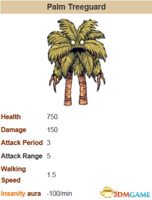 椰子树人一出现就对玩家有仇恨(因为砍树才出现的嘛),如果不采取“措施”,树人的仇恨是永久性的,它会追杀你到天荒地老,即使你坐船逃走,等你回来时它还会认得你。