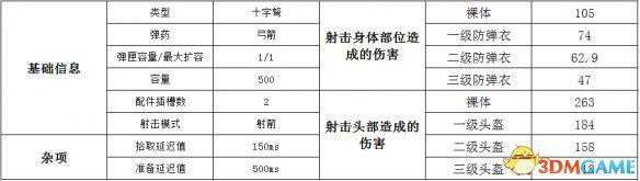 2)伤害极高。虽然官方最近一直在调整枪械伤害,但弩打头依然是无视3级以下头盔一箭死的。伤害仅次于AWM。由于弩适用于后期,在没那么多满耐久3级头的情况下,可以认为一箭死。