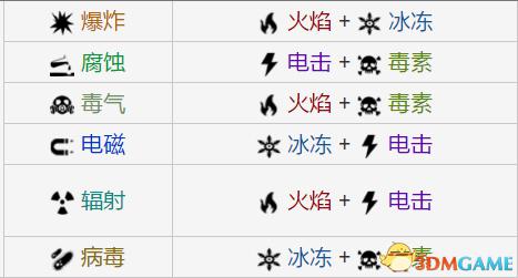 所以,当你面对G系敌人的时候,可以配置出带有腐蚀属性的武器,也就是毒元素+电元素。因为我腐蚀元素对大部分G系敌人都有克制效果,即使对上合金装甲的敌人,也可以通过腐蚀触发来削弱他们的护甲。不过在boss战时,有部分boss不吃腐蚀,所以可以配出辐射。