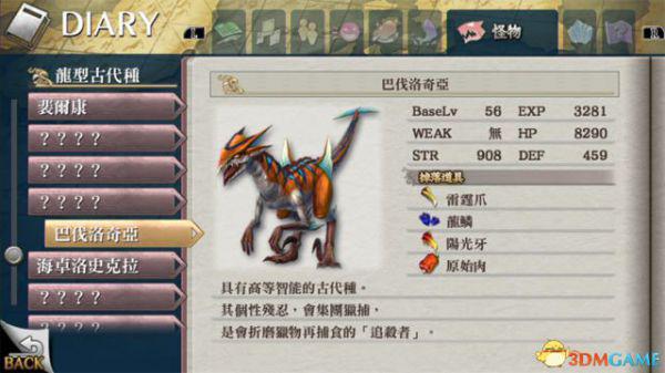 陽光牙:水与森林山丘的「巴伐洛奇亚龙」 掉落