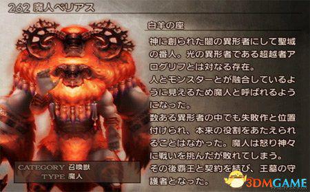 白羊座 闇の異形者,是物语中最初入手的召唤兽(对于FF作品来说,这第一个召唤兽入手的也实在太晚了),为经典的火属性召唤兽,非常有利于游戏前期的攻略。值得一提的是在游戏末期的幻妖之森剧情中,只有召唤出贝利亚斯,才可以打开魔人之门,进入神所在的古代都市。