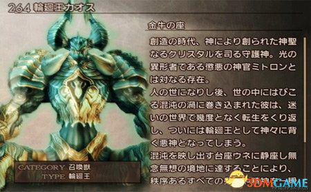 金牛座闇の異形者:輪廻王カオス,是本作入手条件和过程最复杂的召唤兽,拥有各种上级攻击魔法并根据敌人的弱点释放给于巨大的伤害(国际版弱化了,删除了轮回王大部分魔法... )。