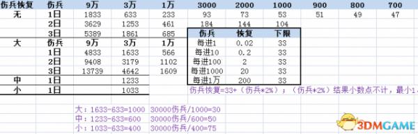 30000伤兵/1000=30,得出 伤兵恢复大的公式:加伤兵/30 。