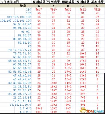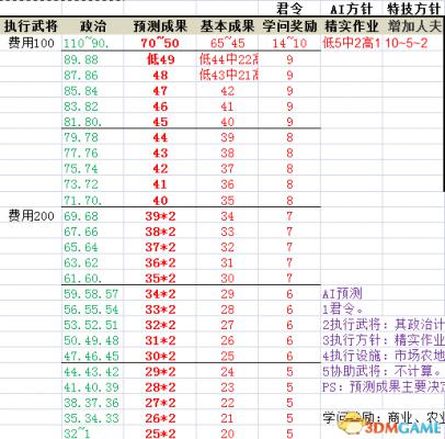 如:如100政治,基本成果在繁荣低时为55,中为55/2=27,高为27/2=13;精实作业为低5中2高1,特技则看下表。