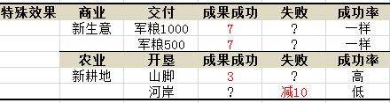 新生意(经测试1000和500军粮得到的成果一样也不能影响成功率,在把政治一路下调100-90-70-60-59,