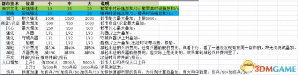 研究内容包括都市技术,内政训练巡察等全方位详细数据研究,并用Excel表格记录。