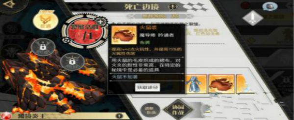 如图所示,火鼠裘死亡边境就可以掉落,但是这个就很看脸了,要知道体力是刷活动本更划算的,用的体力多了,这玩意就很亏的,所以大家要适度不要上头。