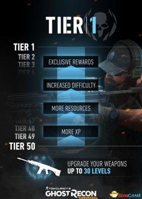 当玩家填满了全新的经验条,向所有玩家显示的“Tier等级”将会提升,等级从1至50级,每5级都会解锁全新的奖励。每一次的提升同样也会伴随着游戏难度的增加——你的敌人会变得更聪明,更坚韧,也更警觉。为了帮助你生存下来,现在你可以通过在资源来升级武器装备的伤害,有30个等级可供提升。资源则可以通过搜索地图、实时赛季挑战或者通过App中的游击模式获得。