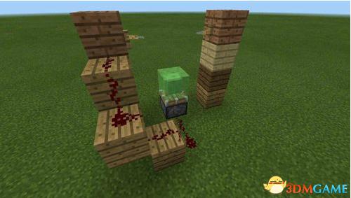 在活塞两旁隔1格放置两个高4格的柱子;