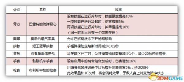 另外,由于枪套是三维均有,所以表中是按五件装备(无枪套)展示,但实际数值是将枪套属性也计算在内的;