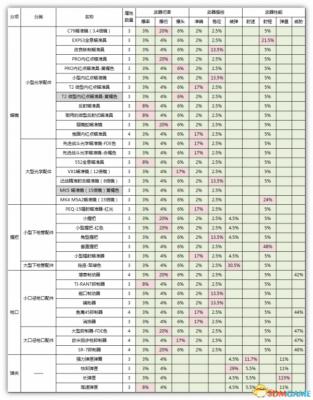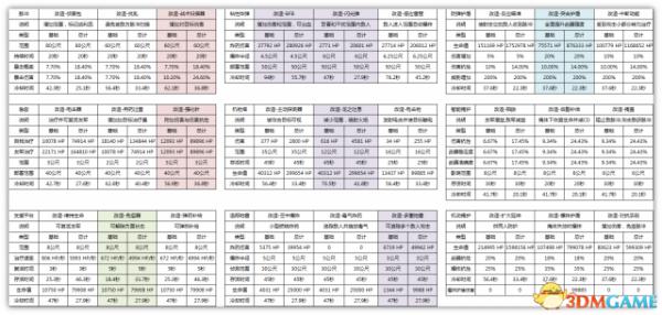 表中的数据仅供参考,因为有些是我自己打到的配件数值,有的是我找的资料,而有的是我自己推测;