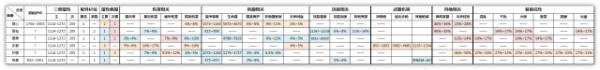 表中黄色标识表示多个属性在同一个校准范围,蓝色为单一主属性校准范围,红色为单一次属性校准范围;