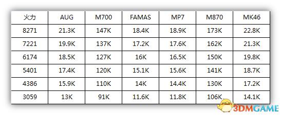对于火力对伤害的影响,我也找了一些资料,之前有个老外计算的表,其中提到的是不同枪械有不同的武器伤害系数,但实话实说没太看明白;